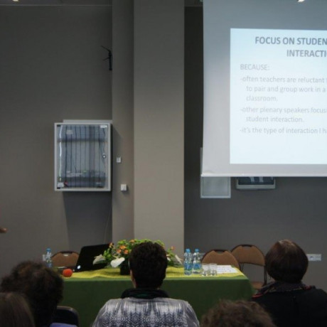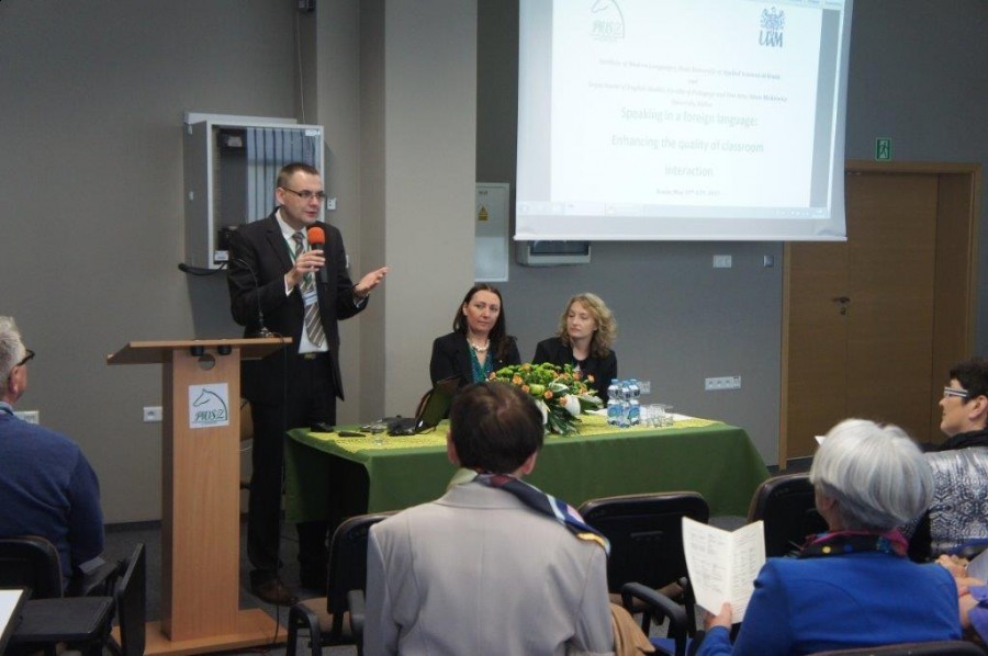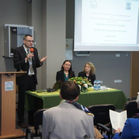Tematem przewodnim czwartej już konferencji „Mówienie w języku obcym” było podnoszenie jakości interakcji w klasie językowej. Pierwszą sesję plenarną poprowadził prof. zw. dr hab. Mirosław Pawlak, rektor PWSZ w Koninie. Wykłady plenarne wygłosili prof. Merrill Swain (University of Toronto) Student to student talk: Enhancing its quality in the second/foreign language classroom, prof. Hanna Komorowska (Szkoła Wyższa Psychologii Społecznej w Warszawie) Conversational styles – pitfalls of attribution, prof. Martin Bygate (St. Mary’s University, London, Lancaster University) Creating and using the space for speaking within the foreign language classroom, prof. Ewa Waniek-Klimczak(Uniwersytet Łudzki) From language learners to language users: Re-thinking pronunciation instruction in the English classroom, prof. Roy Lyster(McGill University) Planning for teachable moments to enhance classroom interaction oraz prof. Steve Walsh (Newcastle University) Developing classroom interactional competence.