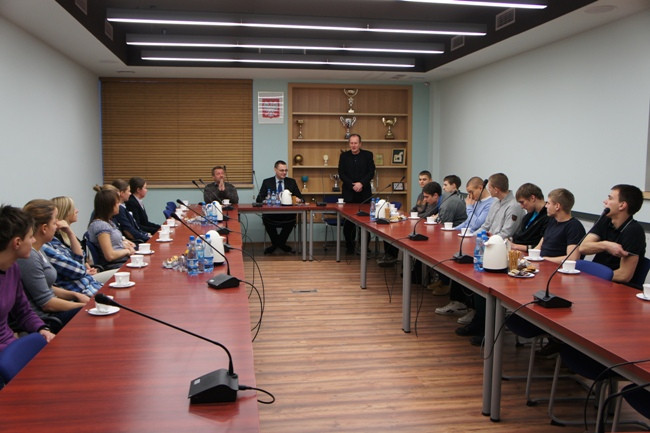 Podczas spotkania JM Rektor pogratulował młodym sportowcom osiągniętych wyników i podziękował za to, że poprzez swoją pracę, treningi i udane starty promują Uczelnię w całej Polsce.