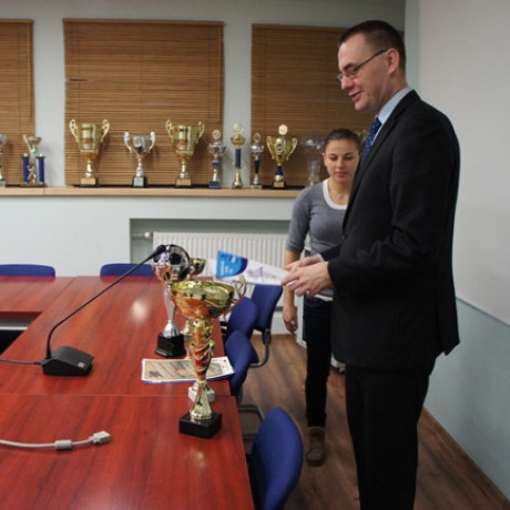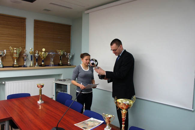 Podczas spotkania Dariusz Sypuła, trener drużyn futsalu kobiet i mężczyzn oraz Tomasz Elsner, prezes Klubu Uczelnianego AZS, przedstawili osiągnięcia sportowców oraz opowiedzieli o planach na przyszłość. W minionym roku akademickim członkowie Klubu Uczelnianego AZS reprezentowali barwy PWSZ w Koninie na Akademickich Mistrzostwach Wielkopolski, gdzie zajęli I miejsce. Brali także udział w Akademickich Mistrzostwach Polski – turnieju eliminacyjnym strefy A, gdzie zdobyli II miejsce oraz zapewnili sobie awans do finału, który odbędzie się w dniach 7-10 lutego br. w Szczecinie.