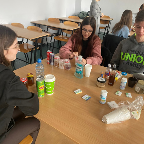 Podczas spotkania uczniowie badali również napary ziołowe, energetyzujące napoje, wody mineralne, mleko, rozpuszczalne w wodzie elektrolity. Na koniec spotkania dyskutowano na temat otrzymanych wyników.