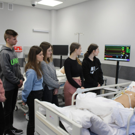 O kierunku pielęgniarstwo opowiadali maturzystom z Zespołu Szkół Ogólnokształcących i Technicznych w Kleczewie członkowie Koła Naukowego „Pielęgniarstwo Przyszłości”. Oprowadzili ich również po Monoprofilowym Centrum Symulacji Medycznej, by mogli wczuć się w rolę studentów na zajęciach praktycznych.