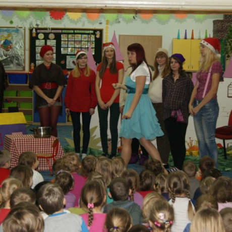 Studenci I roku pedagogiki w ramach przedmiotu „Gry i zabawy” przygotowali spektakl dla dzieci z przedszkola „Bolek i Lolek” w Koninie. 14 stycznia aktorzy, w których wcielili się studenci przygotowani przez dr Jadwigę Knotowicz, zaprezentowali dwie bajki: „Królewnę Śnieżkę” i „Śpiącą królewnę”. Młodzi pedagodzy pokazali, że bajki nie tylko bawią, ale także uczą.