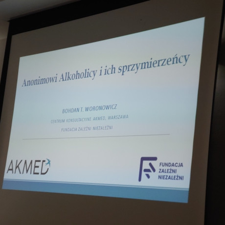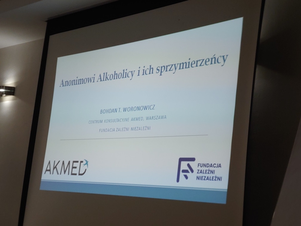 Studenci wysłuchali też wykładu dr. n med. Bohdana T. Woronowicza „Jak profesjonaliści poznawali Wspólnotę AA” poświęconego genezie powstania wspólnoty oraz osobistych refleksji prelegenta dotyczących roli 12 kroków programu wyjścia z nałogu w profesjonalnej terapii uzależnień.