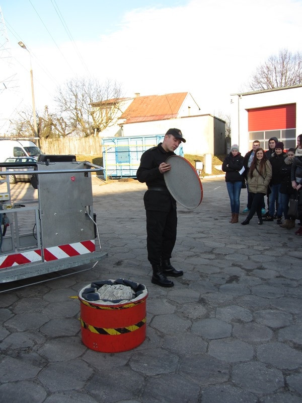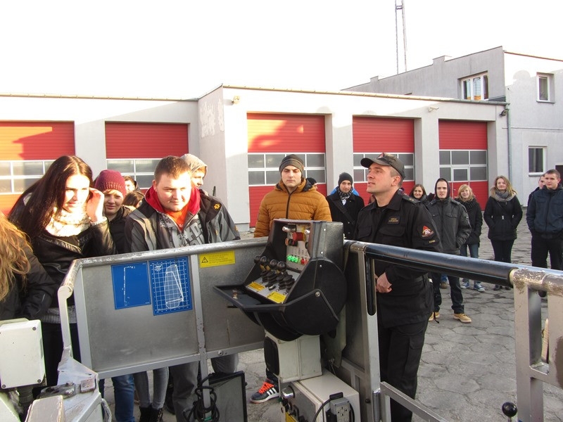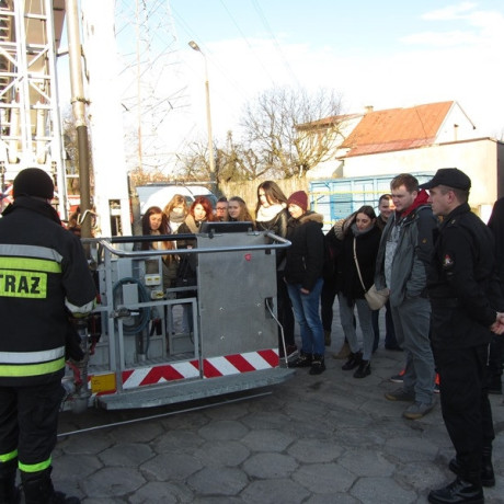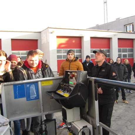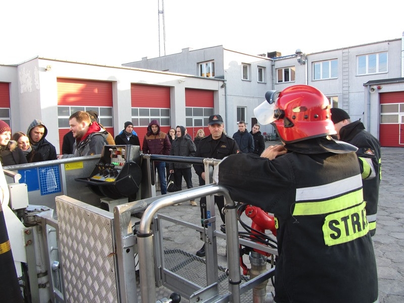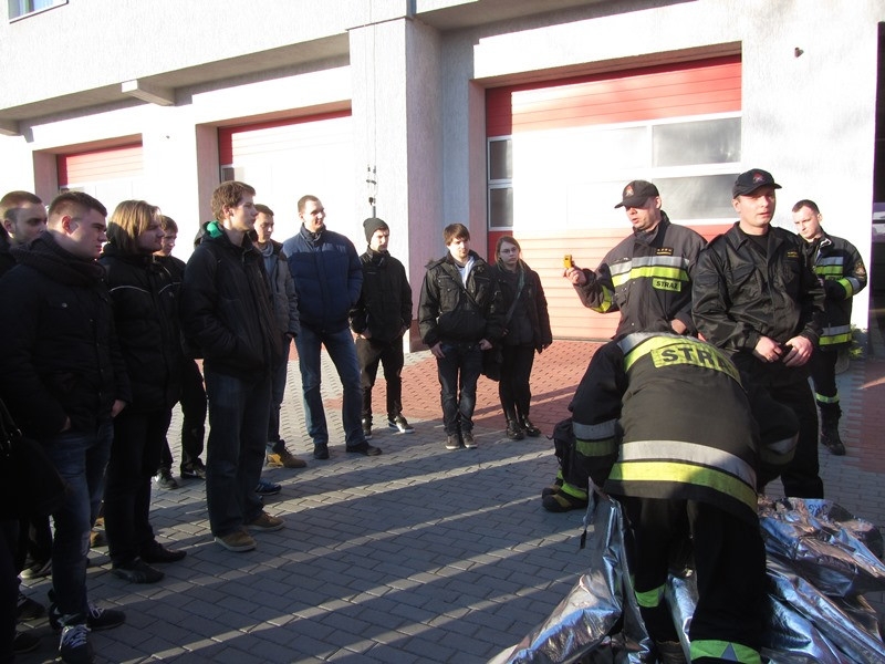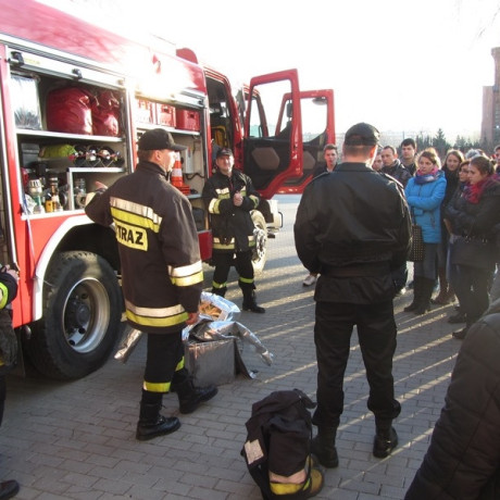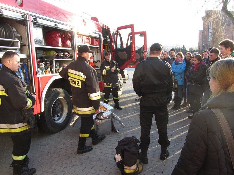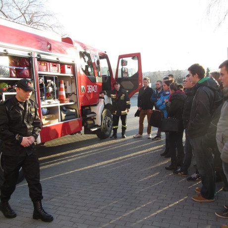 Podczas spotkania studenci zostali zapoznani z codzienną pracą strażaka oraz sprzętem będącym na wyposażeniu Jednostki Ratowniczo – Gaśniczej Nr 1 w Koninie. Omówiono statystykę zdarzeń z terenu miasta i powiatu konińskiego oraz szczególną uwagę zwrócono na prawidłowe zgłaszanie zdarzeń na numery alarmowe.