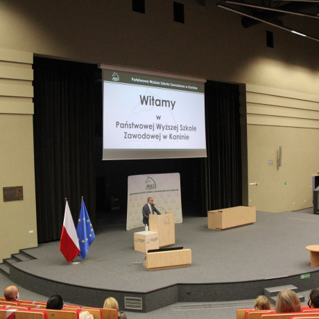 Najpierw karnie ustawili się w kolejce do dezynfekcji rąk, a potem pierwszy raz jako (już prawie) studenci zasiedli w Auli im. Jana A.P. Kaczmarka. Przyjęci na pierwszy rok studiów w PWSZ w Koninie wzięli udział w Dniu Adaptacyjnym.