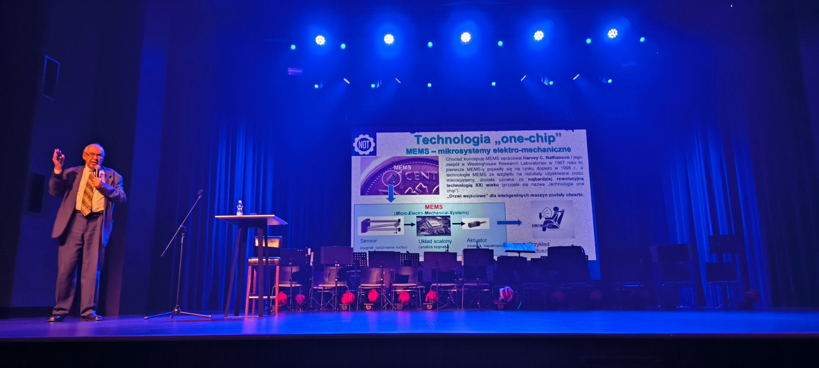 Następnie, w Domu Kultury „Oskard”, prezes konińskiego oddziału NOT, Zbigniew Bajcar, przybliżył zebranym historię tablicy pamiątkowej. Podczas uroczystości dr hab. inż. Edward Pająk, prof. ANS, wygłosił wykład pt. „Sztuczna inteligencja – szanse i zagrożenia”, który spotkał się z dużym zainteresowaniem, szczególnie wśród młodzieży szkolnej. W programie wydarzenia znalazł się również występ Młodzieżowej Orkiestry Dętej ZSG-E im. S. Staszica, która pod batutą Roberta Żurańskiego dostarczyła publiczności niezapomnianych wrażeń muzycznych.