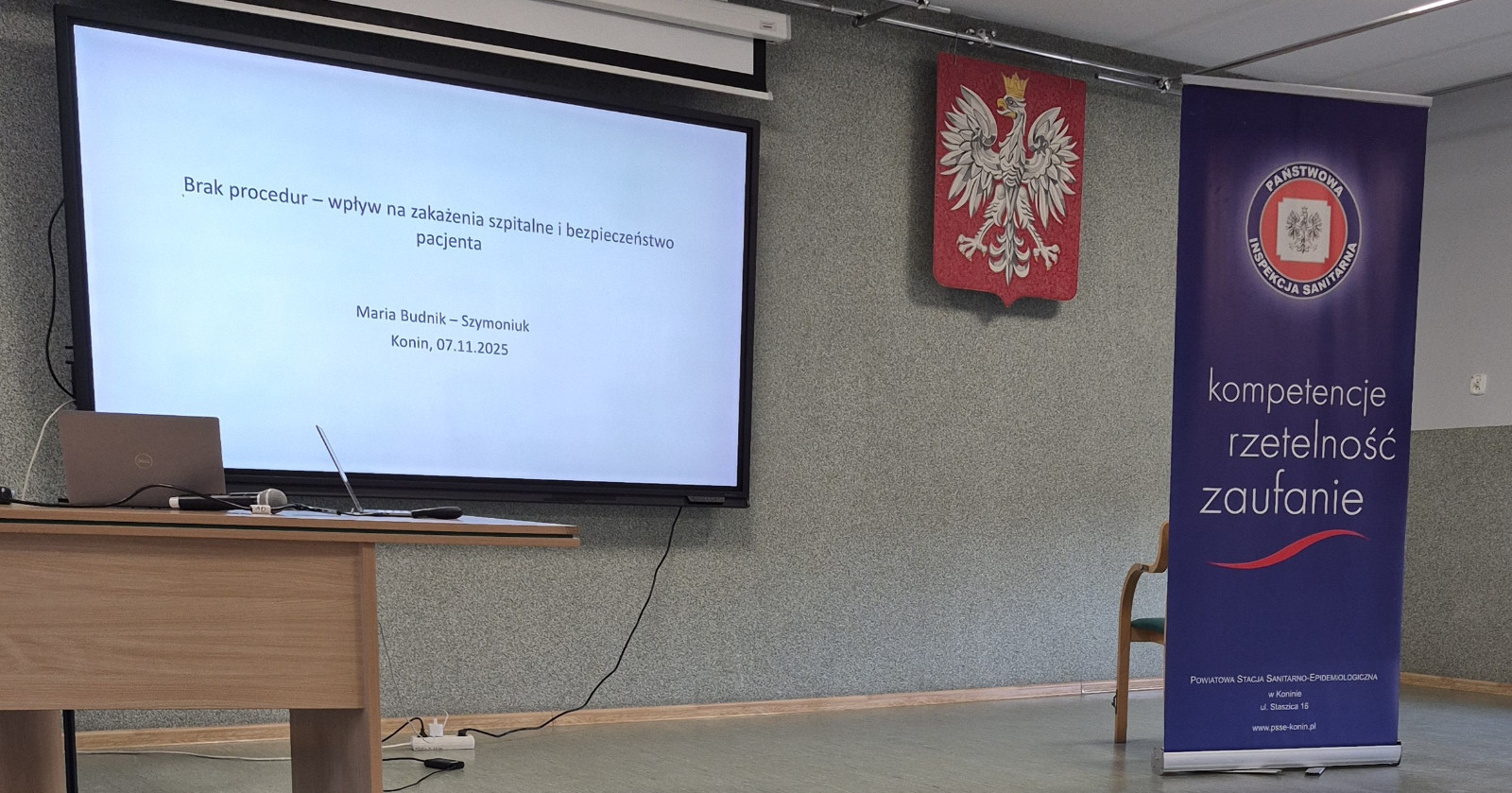 Studenci pielęgniarstwa I i II stopnia oraz członkowie SKN „Pielęgniarstwo Przyszłości” wzięli udział w szkoleniu pt. „Brak przestrzegania procedur – wpływ na zakażenia szpitalne i bezpieczeństwo pacjenta”, zorganizowanym przez Państwowego Powiatowego Inspektora Sanitarnego w Koninie oraz Prezydenta Miasta Konina.