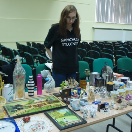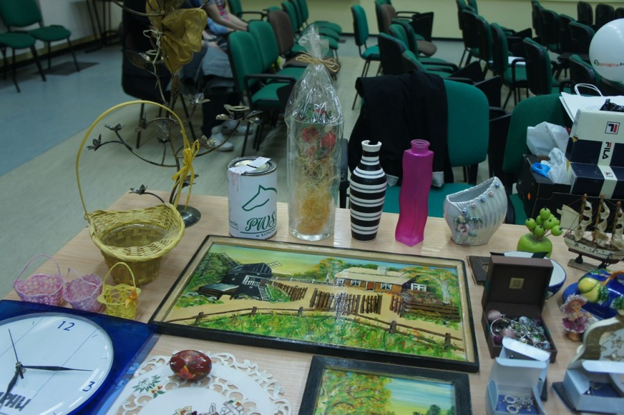 Akcja przynoszenia do siedziby samorządu nieużywanych już lub niechcianych staroci i bibelotów trwa kilka tygodni przed ich wyprzedażą. Tegoroczne zbiory rozłożono dziś (18 kwietnia 2013 r.) na czterech stołach. Co było do kupienia, można obejrzeć w galerii zdjęć poniżej (nam bardzo podobała się pomarańczowa świnka).