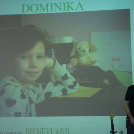 Marzeniem innej podopiecznej fundacji, Dominiki, jest wyjazd do Disneylandu, aby zobaczyć swoją ulubienicę Myszkę Minnie. Arek marzy o laptopie.