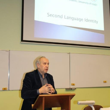 Podczas otwartego spotkania, wykładowca przybliżył zagadnienie związane ze zmianami, jakie zachodzą w osobowości człowieka w procesie nauczania drugiego języka.