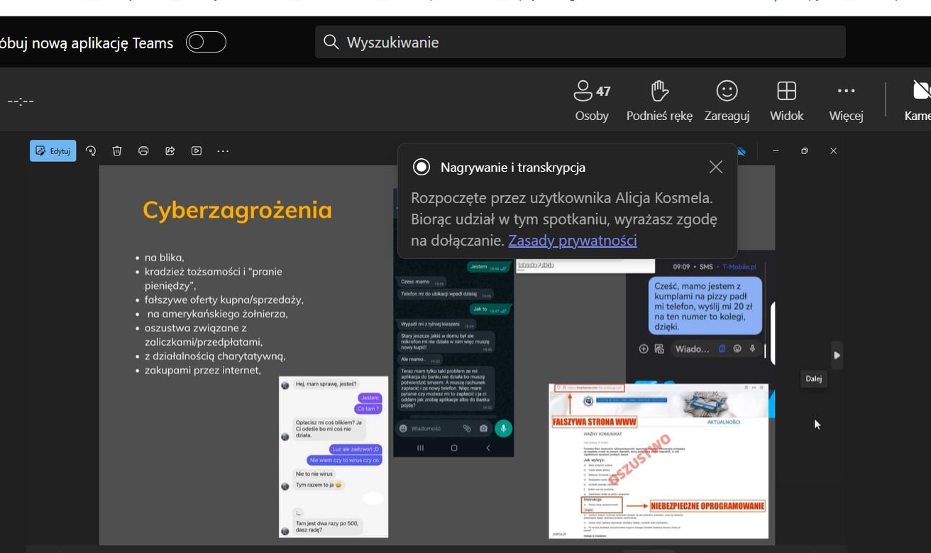Mgr Małgorzata Biskup, reprezentująca Poznańską Akademię Medyczną, dokonała szerokiej i pogłębionej analizy patologii wśród dzieci i młodzieży oraz wskazała zagrożenia w wirtualnym świecie. Jej wystąpienie ukazało perspektywę ofiary i sprawcy wirtualnej przemocy. Wystąpienie skłoniło uczestników konferencji do refleksji nad rolą rodziców i pedagogów w budowaniu świadomości młodych ludzi co do zagrożeń w sieci, a także rozwijania kompetencji dzieci i młodzieży.