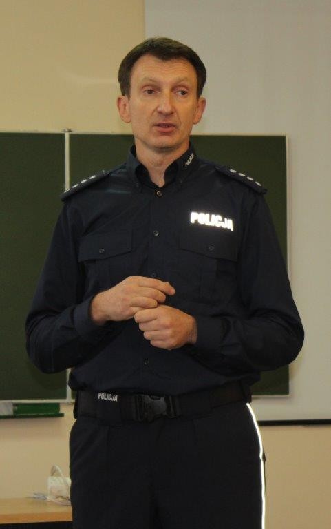 Nadinspektor wyjaśnił, że spotkanie to może pomóc zawczasu w podjęciu decyzji o wstąpieniu do tej służby. – Do tego trzeba się dobrze przygotować. Dwa miesiące przed – to za mało – zaznaczył. Dlatego należy już teraz zadbać o kondycję i fizyczną, i psychiczną, odpowiednio się odżywiać. Wciągał studentów do rozmowy. Na jego pytanie, jaki powinien być policjant, młodzi ludzie rzucali z ławek: – Powinien mieć nienaganny wygląd, powinien być odważny, wysportowany, zrównoważony psychicznie, sprawiedliwy…