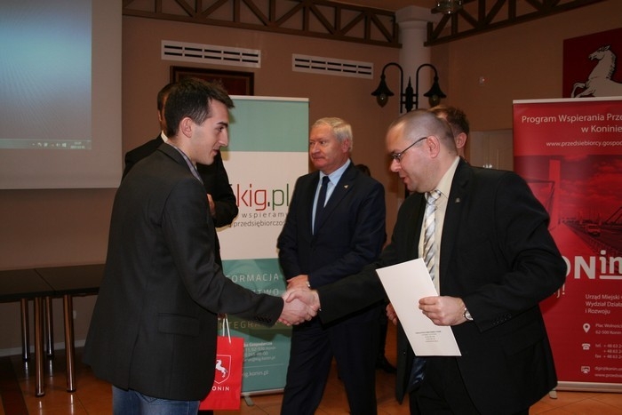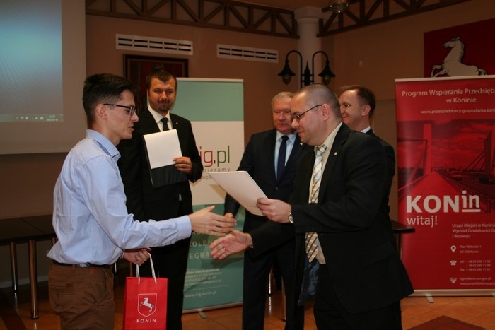 Kolejna edycja Akademii Młodej Przedsiębiorczości zakończyła się 1 grudnia w Sali Ratuszowej Urzędu Miejskiego w Koninie. Laureatem I nagrody jednogłośnie wybrano Przemysława Tomczaka za pracę na temat „Konińskie Centrum Przedsiębiorczości”.