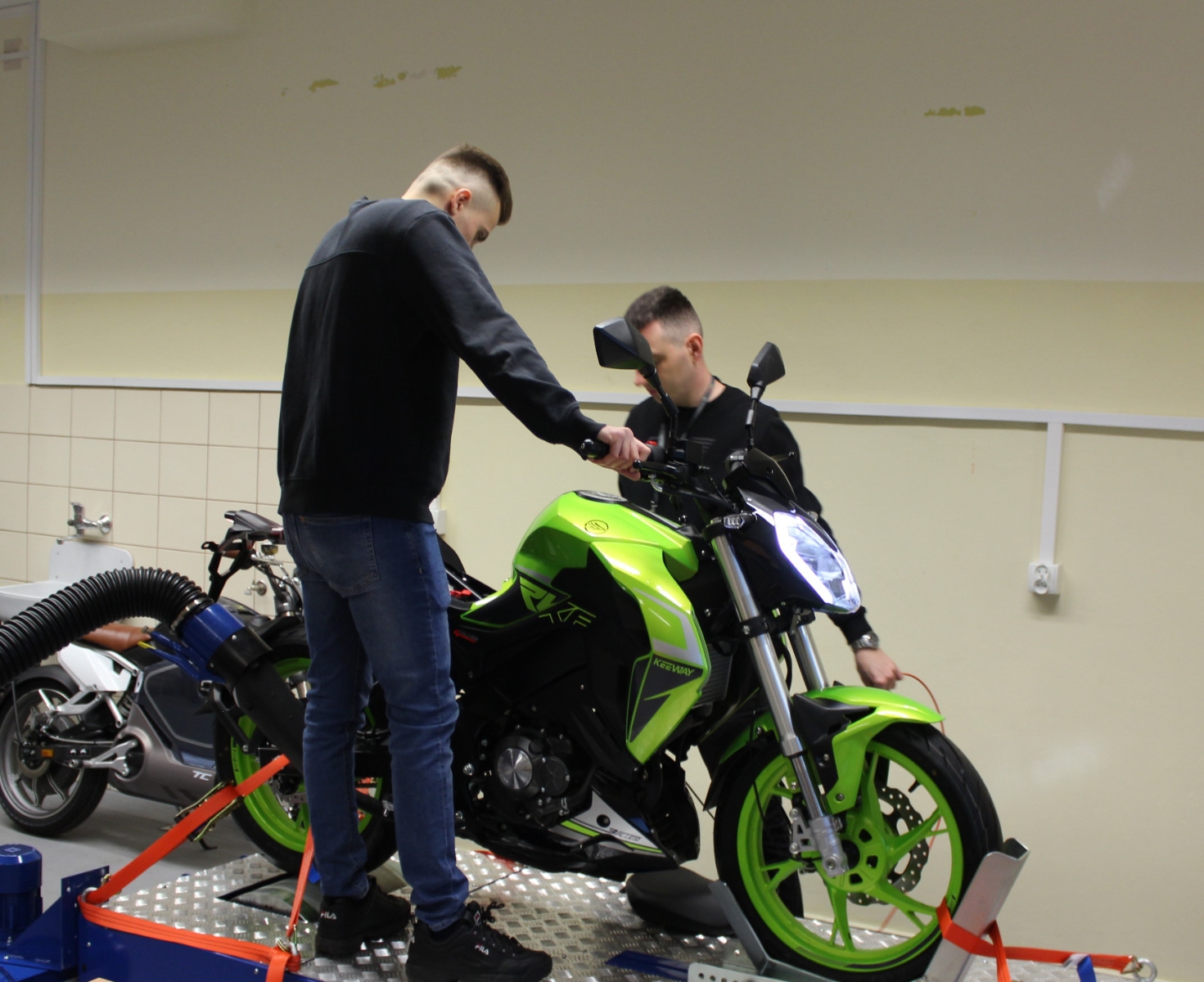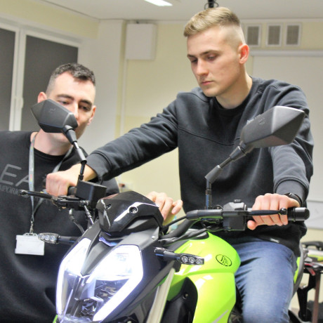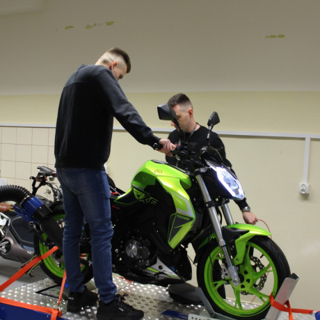 W laboratorium stoi także motocykl elektryczny. Przyszli inżynierowie będą badać na hamowni również i jego parametry. – Dzięki obserwacji krzywych mocy i momentu obrotowego w funkcji prędkości obrotowej dwóch różnych napędów, elektrycznego i spalinowego, studenci będą mogli sami wskazać ich zalety i wady odnośnie stosowania w pojazdach samochodowych – podkreśla wykładowca.