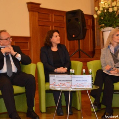 Prof.Lewandowska-Tomaszczyk podzieliła się swoją wiedzą na temat zastosowania języków specjalistycznych i znajomości kultur w prowadzeniu negocjacji w biznesie, natomiast dr Stolarczyk-Gembiak zwróciła uwagę na konieczność wsparcia kształcenia w kierunku wielojęzyczności zgodnie z potrzebami rynku pracy i prowadzoną przez Unię Europejska polityką językową.