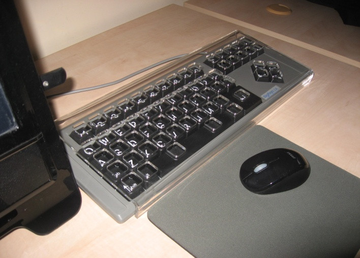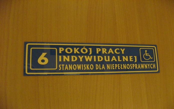 W Bibliotece Uczelnianej zorganizowano specjalne stanowisko komputerowe z odpowiednim oprzyrządowaniem dla osób niedowidzących (pomieszczenie przygotowane do indywidualnej pracy).