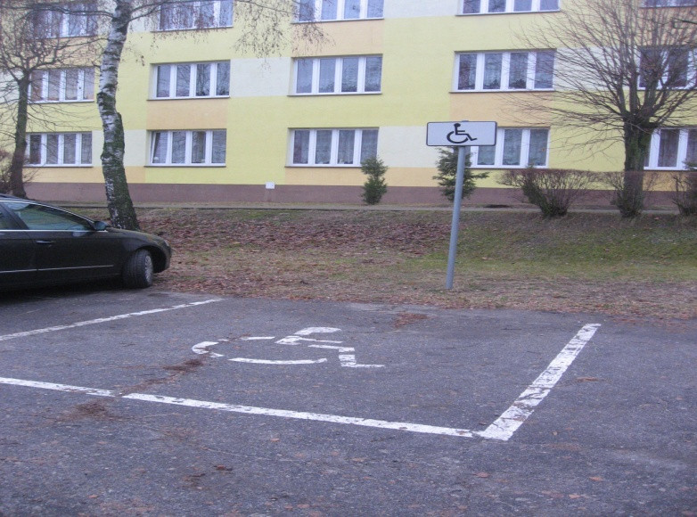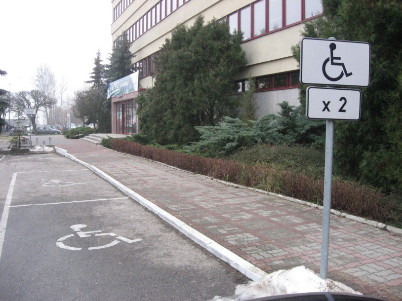 Na wszystkich uczelnianych parkingach (przy ul. Przyjaźni 1, Popiełuszki 4 oraz Wyszyńskiego 3c) znajdują się wydzielone i oznakowane miejsca dla pojazdów należących do osób niepełnosprawnych.