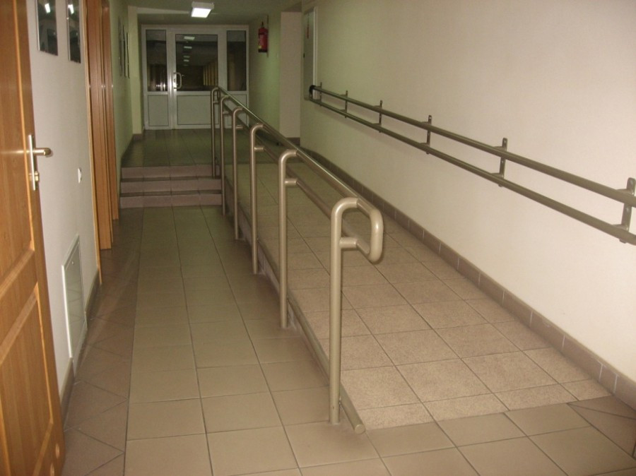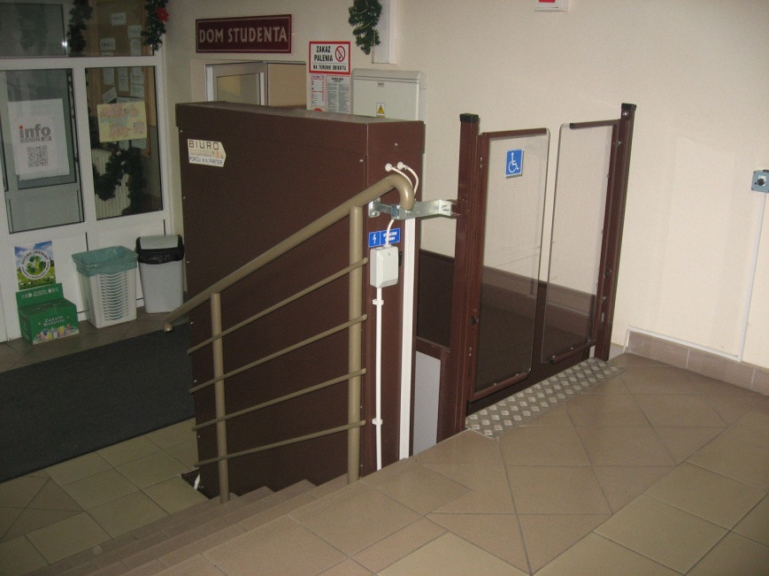 Podjazdy dla wózków, windy wewnętrzne i zewnętrzne, platforma schodowa, a także odpowiednio przystosowane sanitariaty, to techniczne ułatwienia dla niepełnosprawnych w dostępie do nauki we wszystkich budynkach dydaktycznych Państwowej Wyższej Szkoły Zawodowej w Koninie.