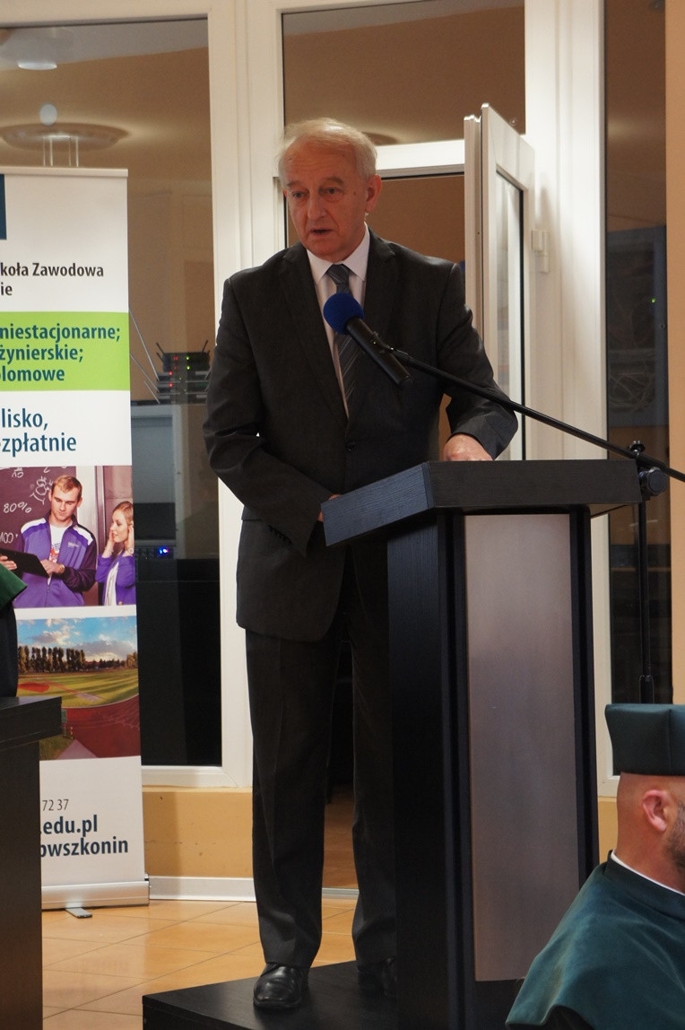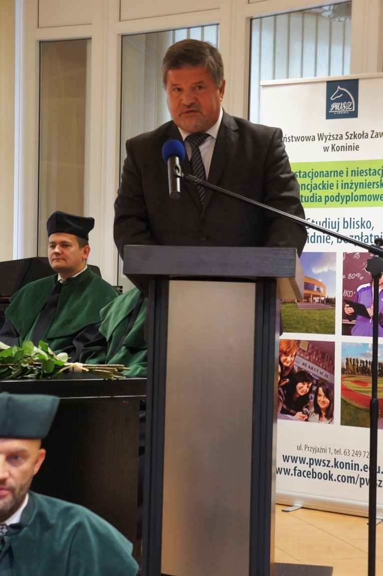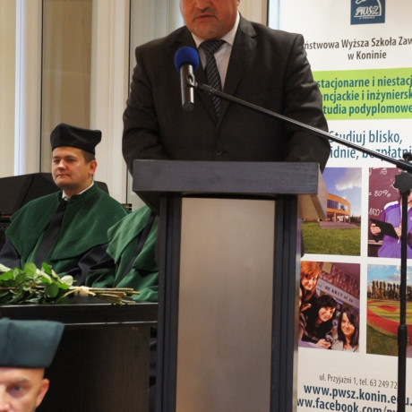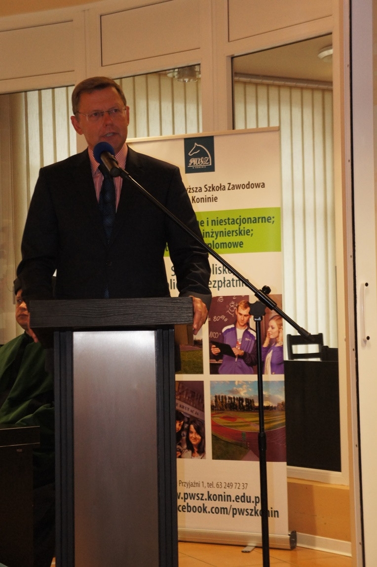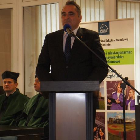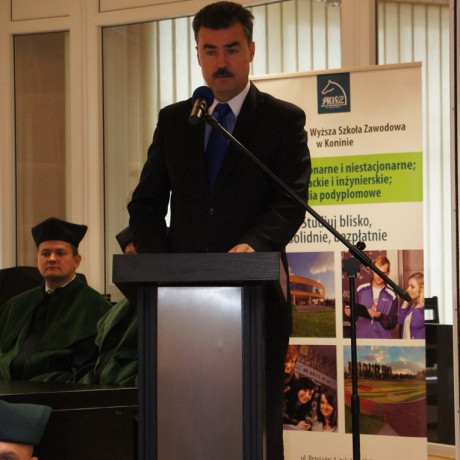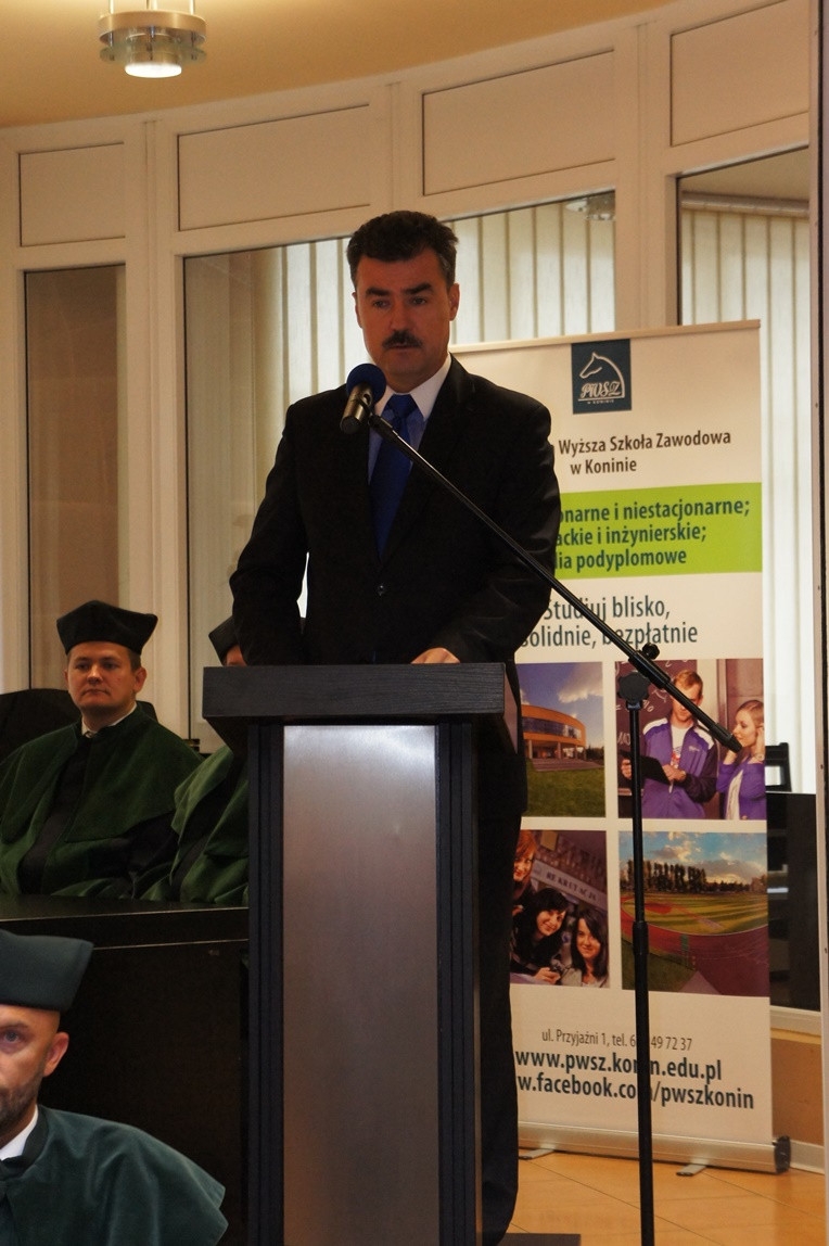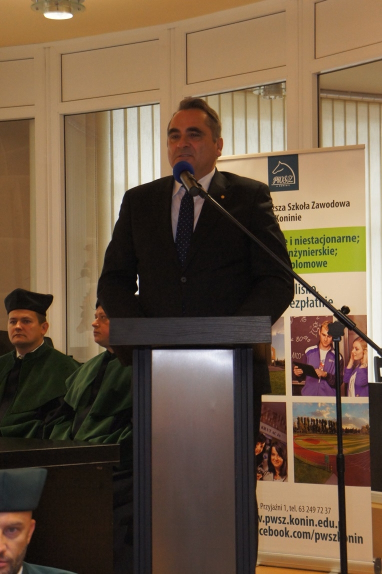 Rektor przypomniał, że konińska PWSZ została utworzona 1 lipca 1998 roku z inicjatywy społeczności lokalnej, władz samorządowych i parlamentarzystów ziemi konińskiej. Jej pierwszym rektorem był prof. dr hab. Józef Orczyk, a prorektorem dr Tomasz Olejniczak, drugim rektorem był prof. nadzw. dr hab. Wojciech Poznaniak, a prorektorem dr Marek Naglewski. – Jestem pełen szacunku i podziwu dla osób, które podjęły się trudu tworzenia tej uczelni od podstaw – powiedział rektor Mirosław Pawlak, który w PWSZ w Koninie pracuje od 1999 roku. Początkowo był wykładowcą w Instytucie Neofilologii, potem dyrektorem tego instytutu, a funkcję rektora uczelni sprawuje od dwóch lat.
