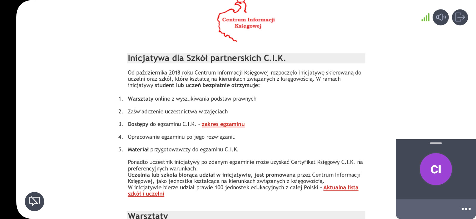 • bezpłatny pakiet dostępu do egzaminu C.I.K.;