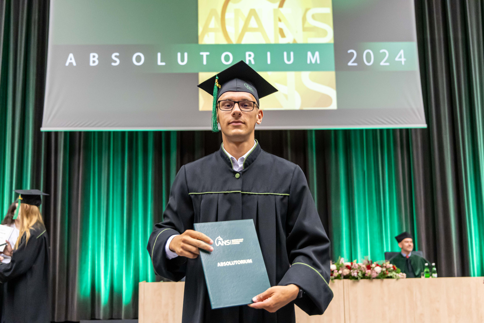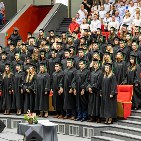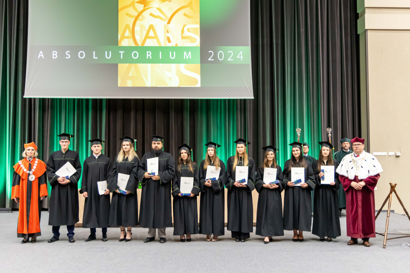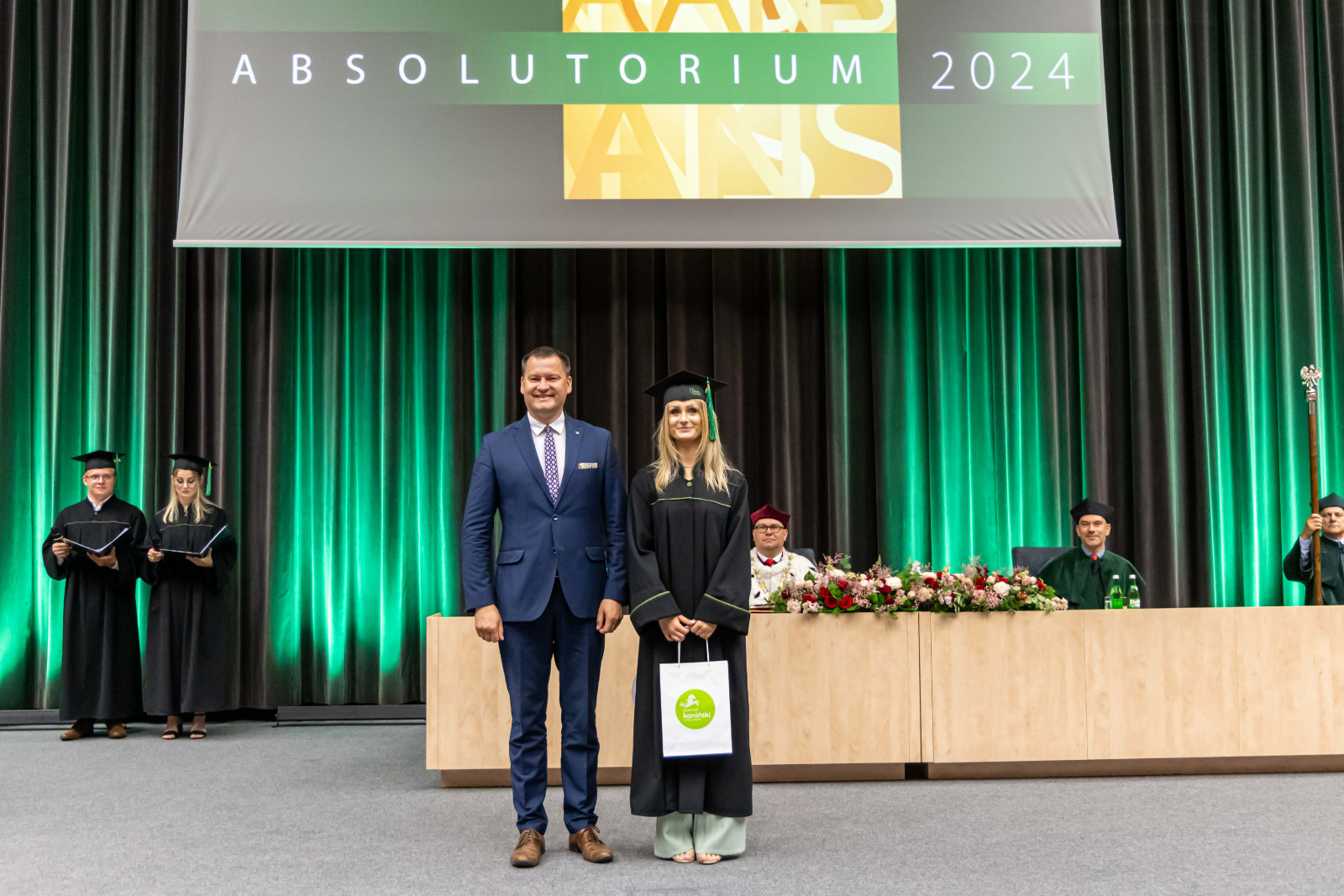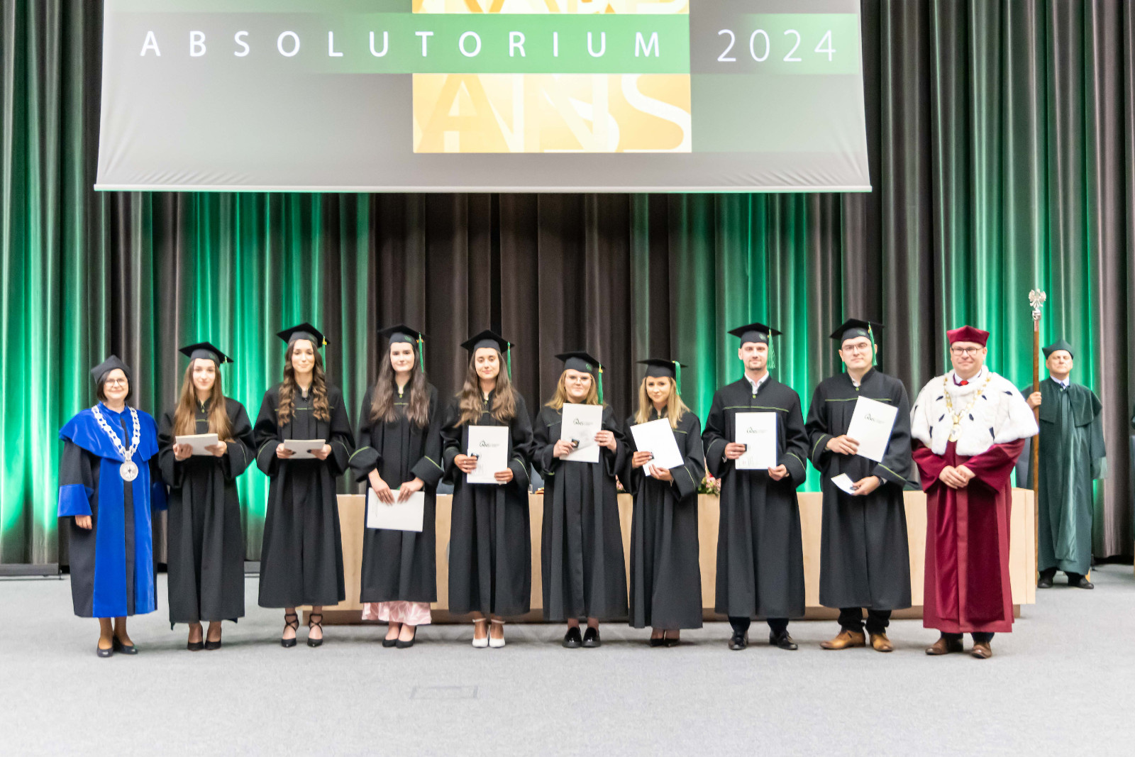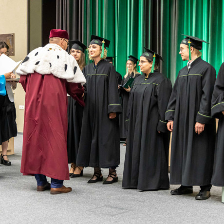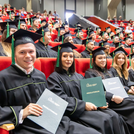 Absolutorium, jak co roku, odbyło się w trzech wydziałowych turach. Zanim kończący studia odebrali karty, pożegnali ich przede wszystkim dr hab. Artur Zimny, prof. i rektor ANS w Koninie, dziekani oraz koleżanki i koledzy.