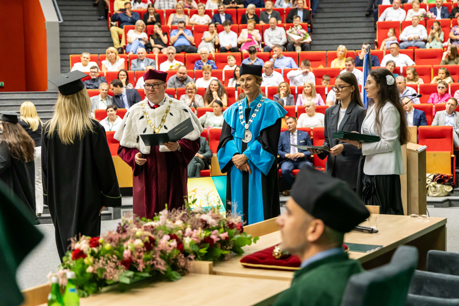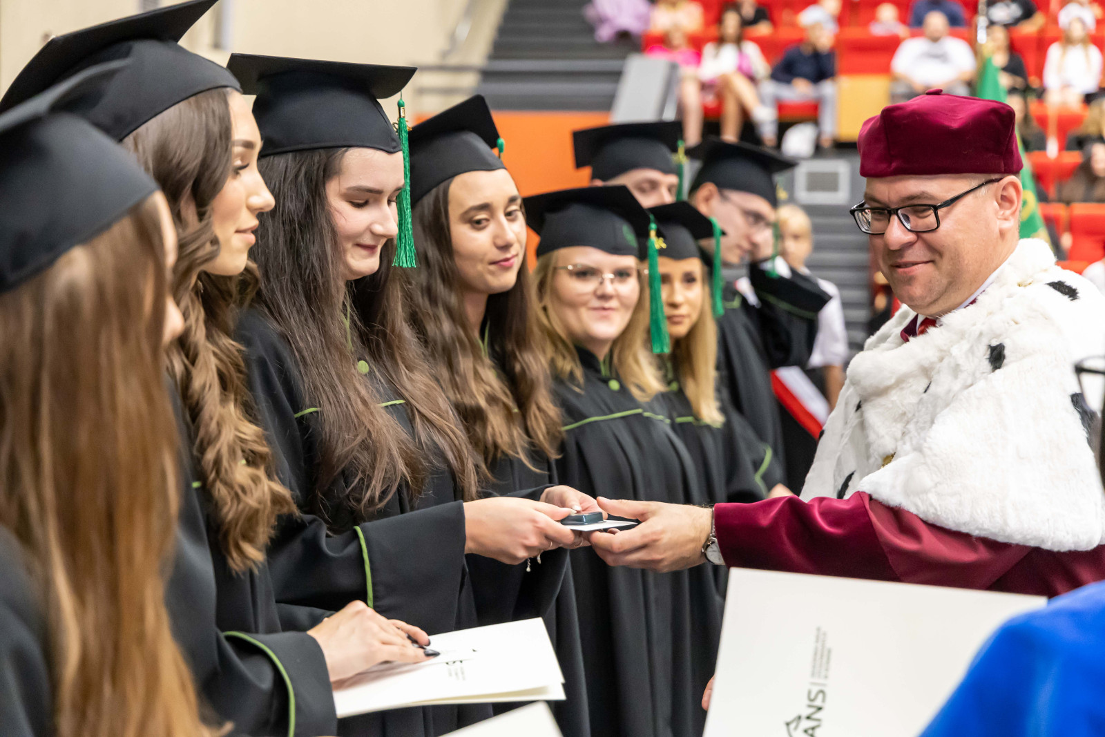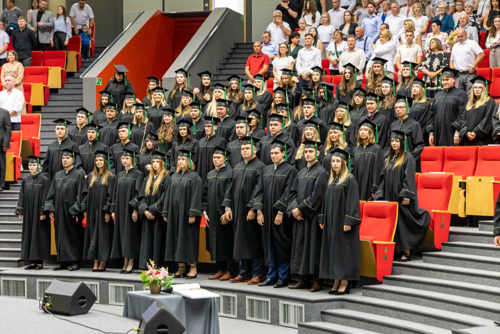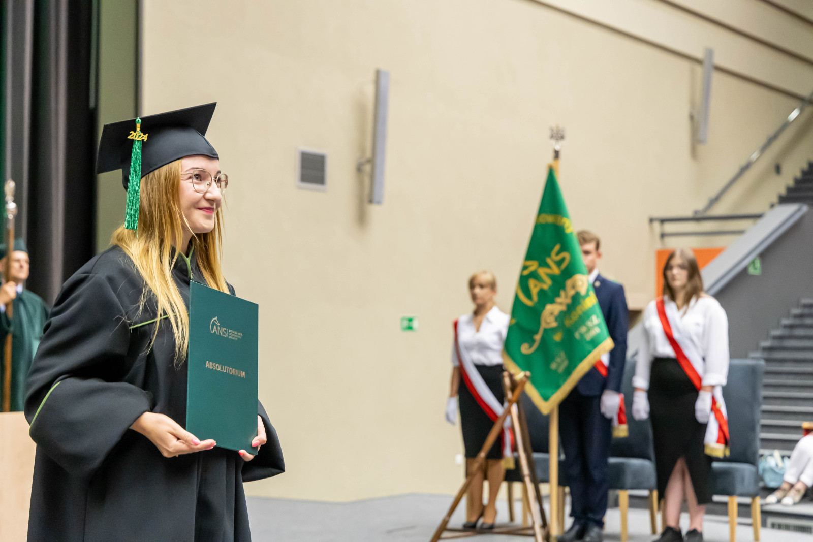 Absolutorium, jak co roku, odbyło się w trzech wydziałowych turach. Zanim kończący studia odebrali karty, pożegnali ich przede wszystkim dr hab. Artur Zimny, prof. i rektor ANS w Koninie, dziekani oraz koleżanki i koledzy.