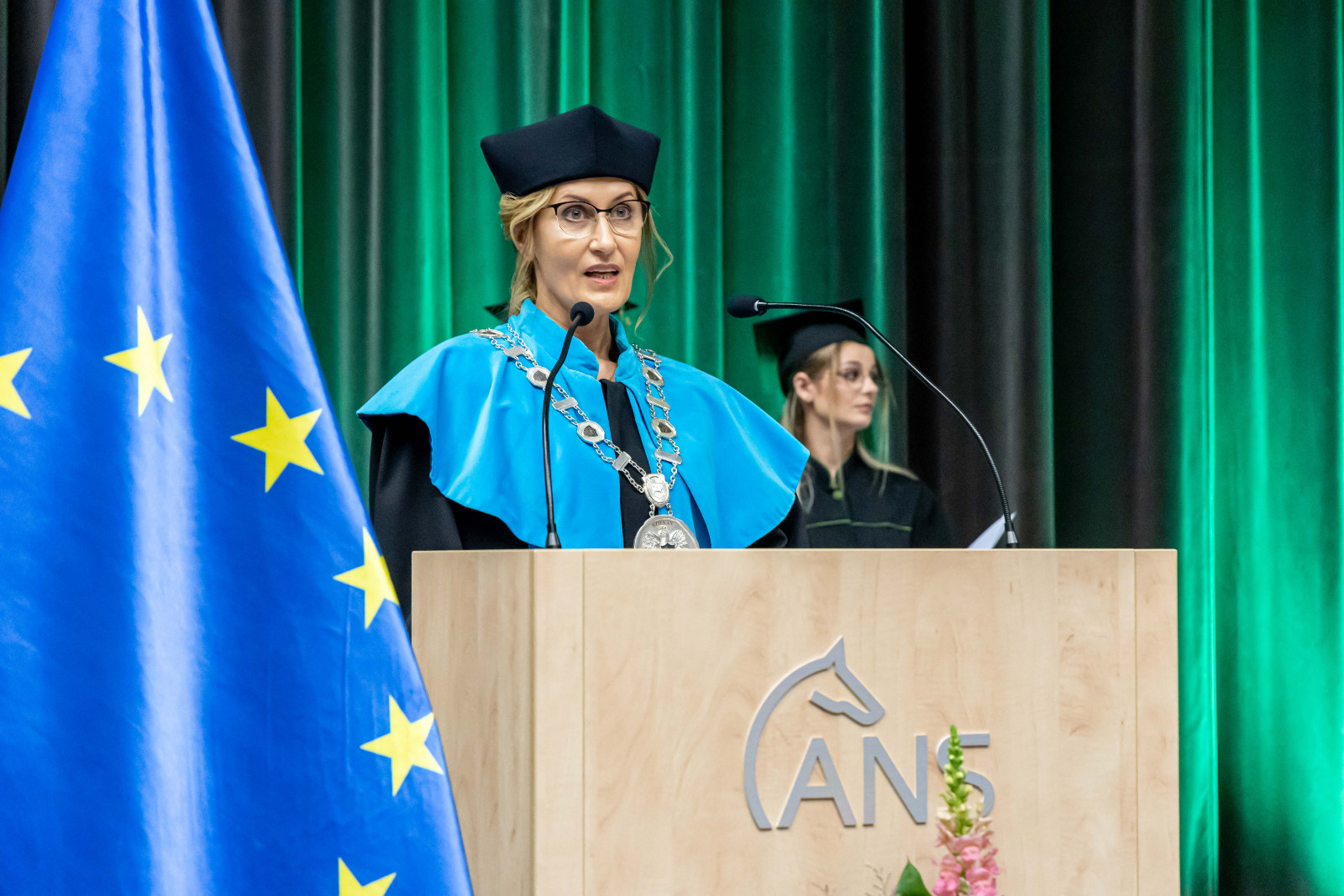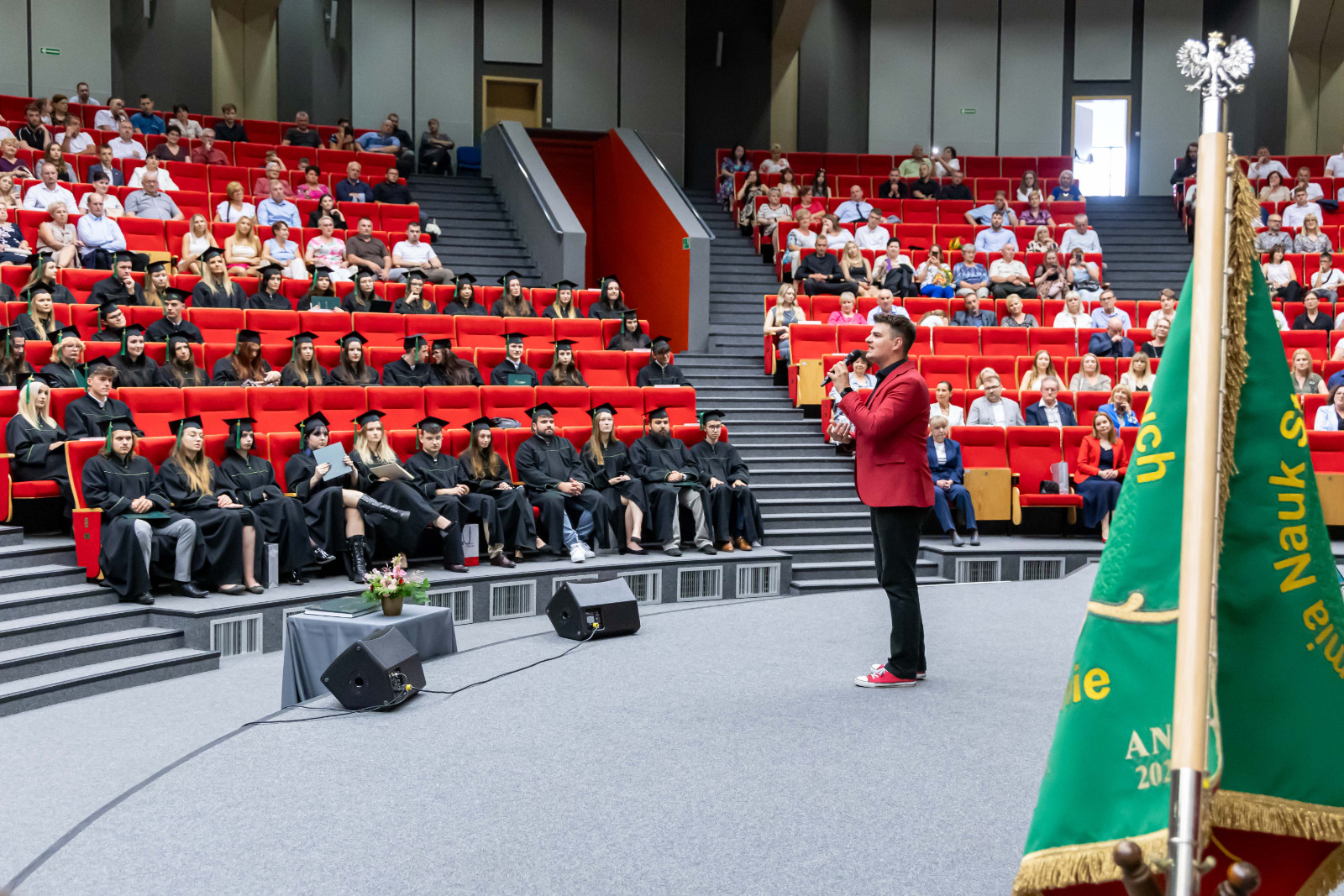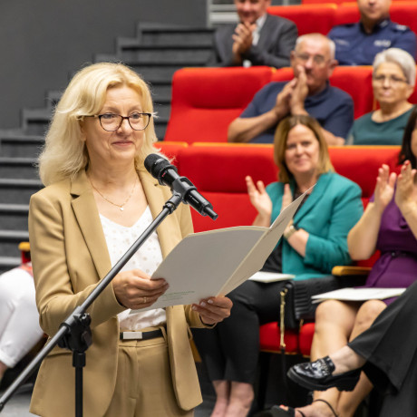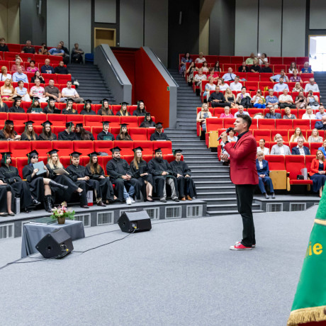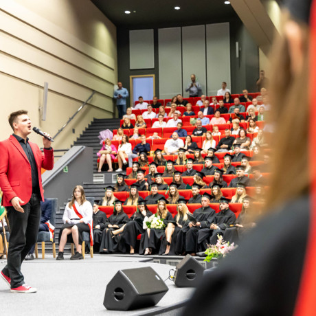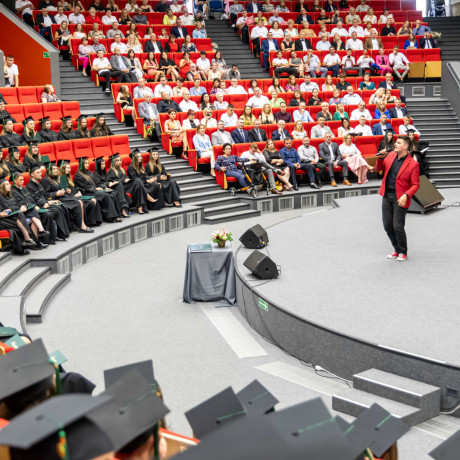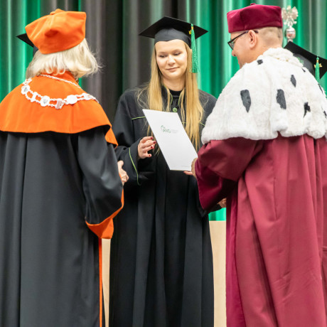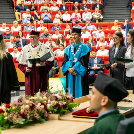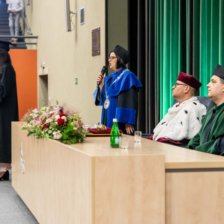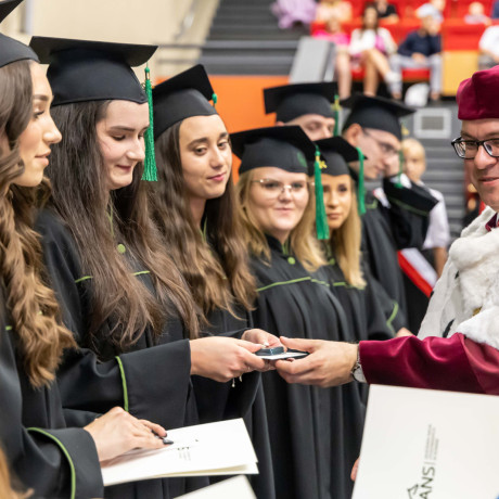 Tradycją takich uroczystości są słowa pożegnania przez opuszczających uczelnię. – Chciałabym w imieniu wszystkich absolwentów serdecznie podziękować wykładowcom, którzy dzielili się z nami swoją pasją i ogromem doświadczenia, ale także zawsze służyli radą i pomocą w każdej sprawie – mówiła Sandra Owczarek, absolwentka logistyki i przewodnicząca Samorządu Studenckiego. – Mam nadzieję, że te kilka lat spędzonych tutaj przyniosło Wam, tak jak i mnie, nie tylko wiedzę i umiejętności potrzebne w budowaniu przyszłej kariery, ale przede wszystkim przyjaciół na całe życie oraz wspomnienia, o których z przyjemnością będziemy opowiadać innym – zapewniła.