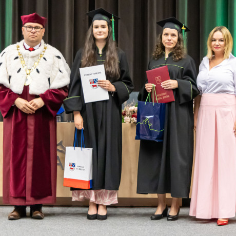 Jak co roku absolwentom, którzy wyróżnili się świetnymi wynikami w nauce i wyjątkowym zaangażowaniem na rzecz uczelni, rektor wręczył listy gratulacyjne, odznaki Wyróżniający się Student Akademii Nauk Stosowanych w Koninie połączone z wpisem do specjalnej księgi wyróżniających się studentów. Swoje nagrody przyznali również przedstawiciele lokalnych samorządów i firm z naszego regionu.