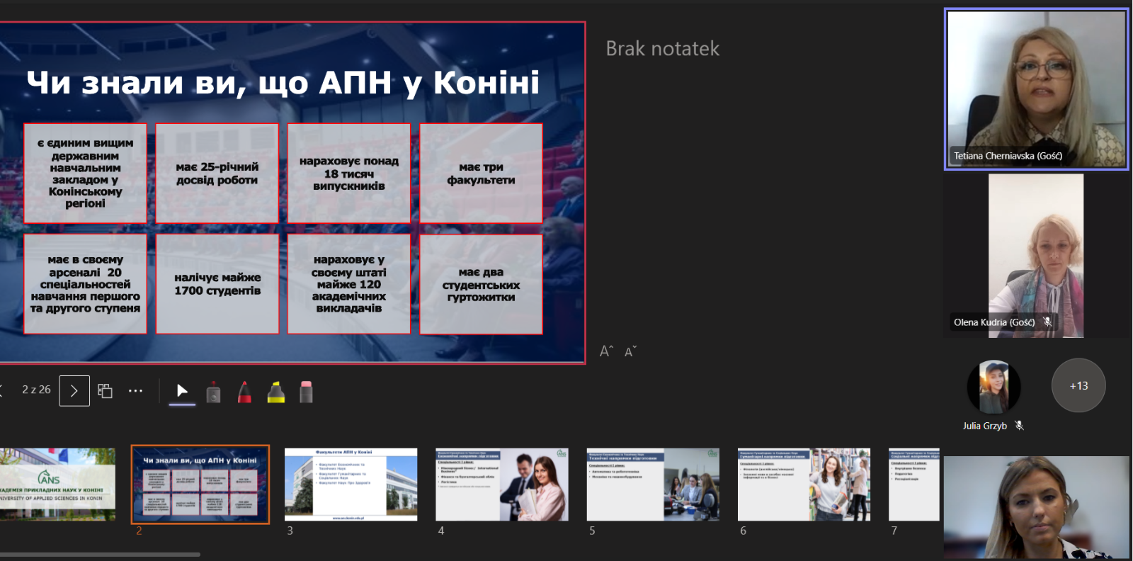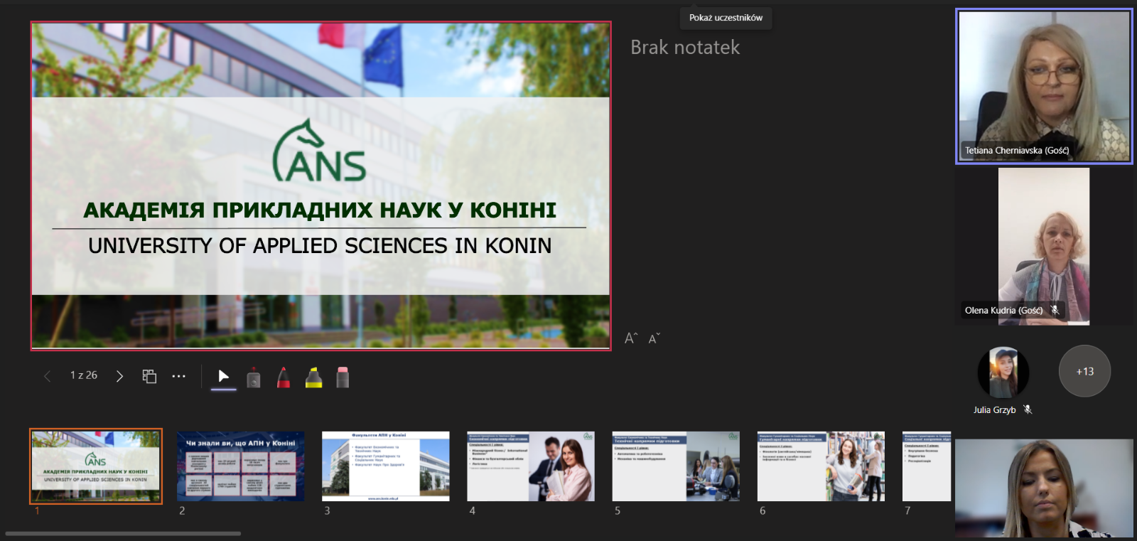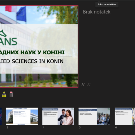 Podczas spotkania z ukraińską młodzieżą przedstawiona została oferta edukacyjna oraz korzyści wynikające ze studiowania w ANS w Koninie. Z kolei studenci kierunku „języki obce w mediach i biznesie” przygotowali bardzo ciekawe prezentacje w języku angielskim dotyczące Polski, Konina i naszej Uczelni.
