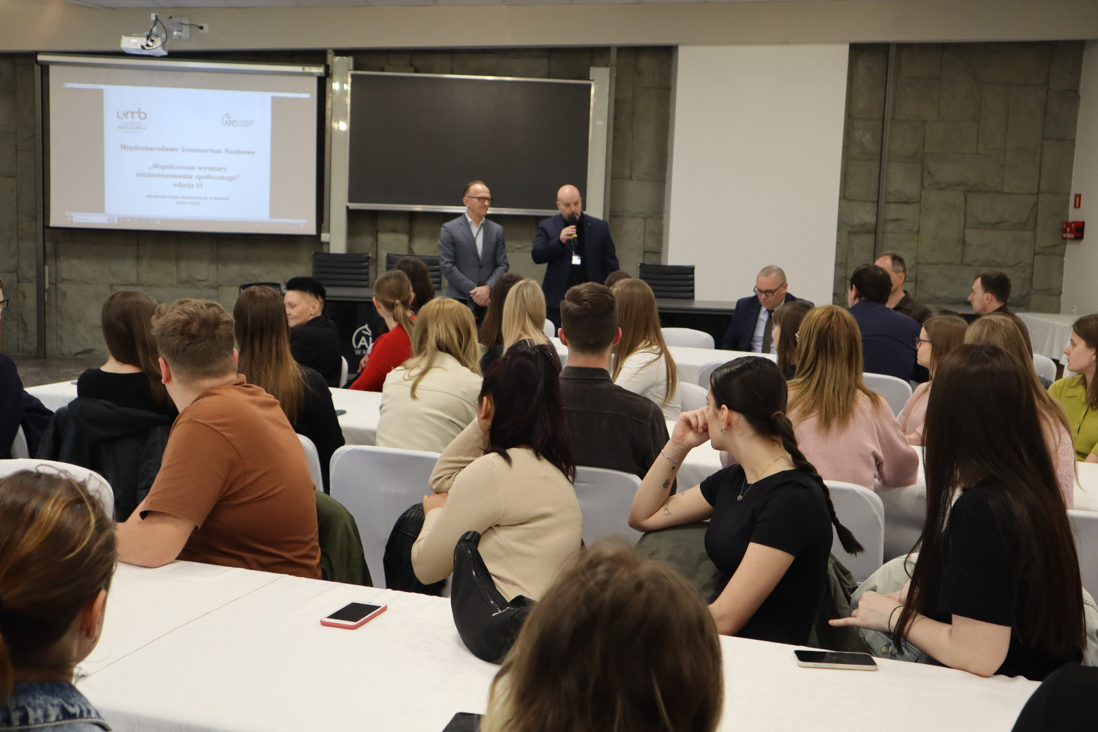 Walor naukowy polsko-słowackiej współpracy obejmował realizację szóstej edycji seminarium naukowego pt. ,,Współczesne wymiary niedostosowania społecznego’’. Seminarium otworzył rektor ANS w Koninie – dr hab. Artur Zimny, prof. ANS podkreślając obustronne korzyści, jakie wynikają z międzyuczelnianej, międzynarodowej współpracy. W trakcie obrad referaty wygłosili prof. Peter Jusko, dr Erik Šatara, dr Filip Bambúch z Katedry Pracy Socjalnej UMB w Bańskiej Bystrzycy, Artur Cygan i Marcin Olejniczak z Katedry Nauk Społecznych ANS w Koninie oraz Joanna Kamińska i Kinga Mazur studentki pedagogiki oraz członkinie SKN Wizja oraz Maja Olejniczak i Joanna Kazimierczak studentki kierunku resocjalizacja.