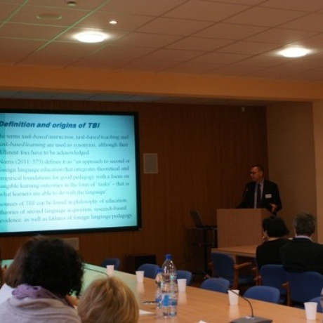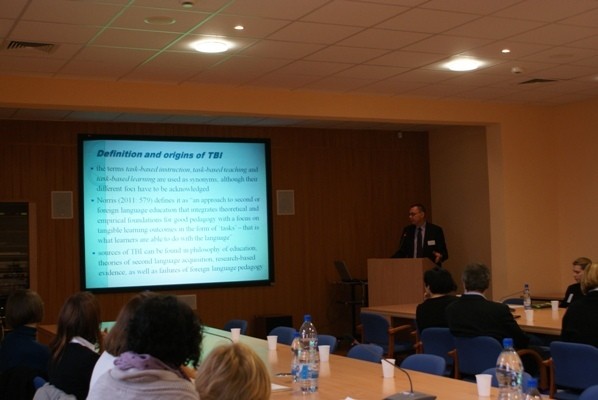 Rektor Państwowej Wyższej Szkoły Zawodowej w Koninie, prof. nadzw. dr hab. Mirosław Pawlak, podczas III Międzynarodowego Seminarium Naukowego "KOMUNIKACJA-KULTURA- KREATYWNOŚĆ wygłosił wykład plenarny nt. Task-based instruction in the Polish educational context: Opportunities and pitfalls.