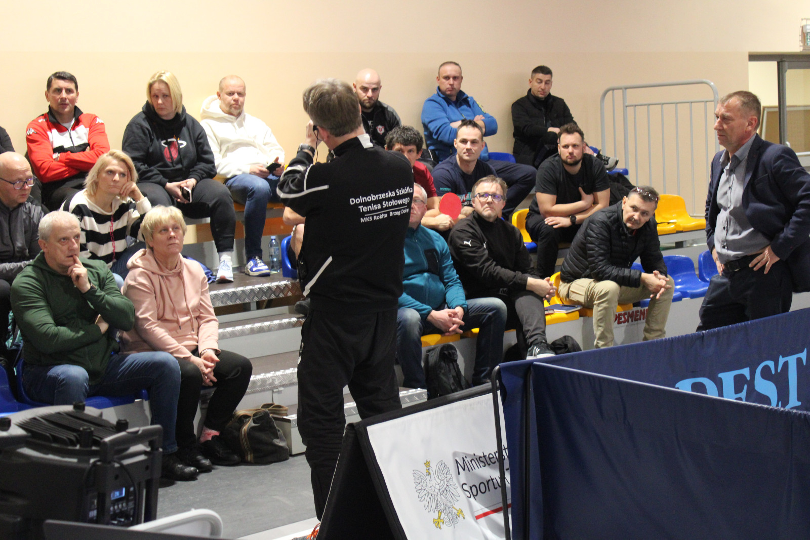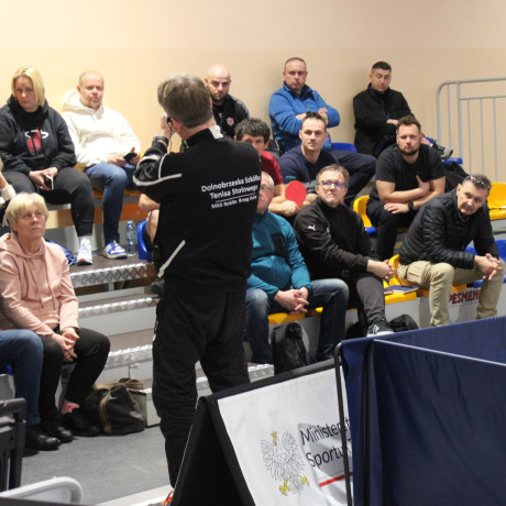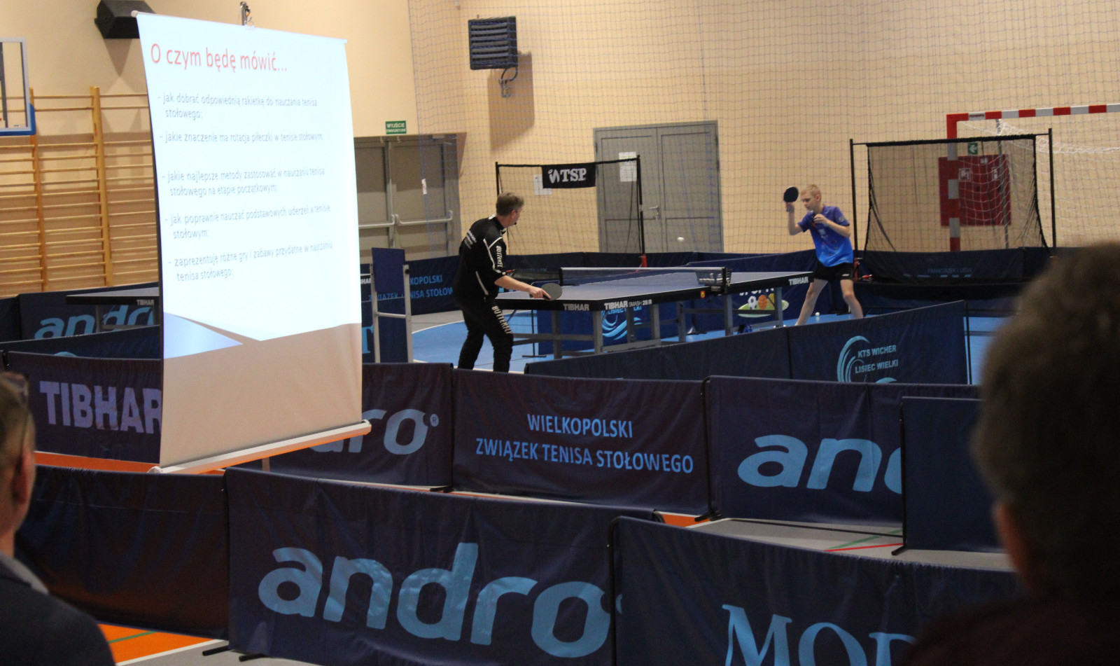 W pierwszej części Marek Chrabąszcz, trener klasy mistrzowskiej tenisa stołowego, podzielił się praktycznymi poradami trenerskimi i pokazał je uczestnikom. W drugiej części ci drudzy chwycili rakietki i stanęli przy stołach pingpongowych, by omówione umiejętności przećwiczyć w asyście trenerów i młodszych zawodników klubu tenisowego.