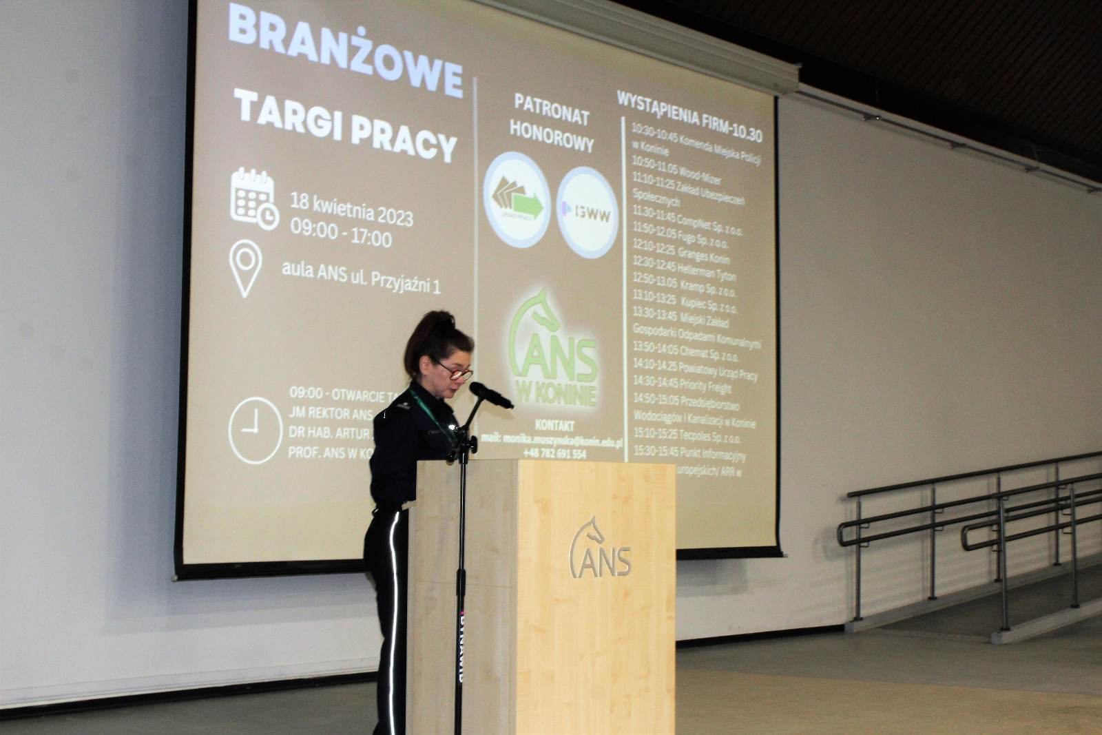 Pierwsza edycja Branżowych Targów Pracy odbyła się 18 kwietnia 2023 r. w auli Akademii Nauk Stosowanych w Koninie.