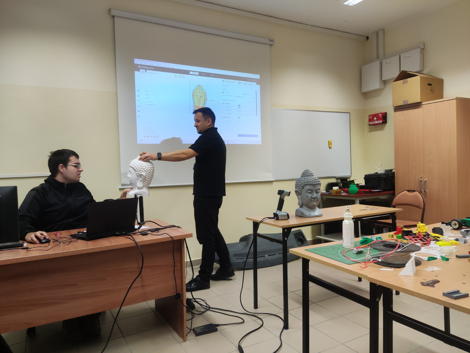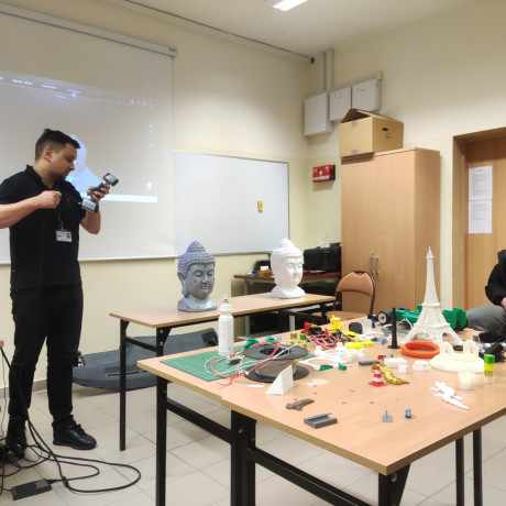 Uczestnicy warsztatów najpierw obserwowali proces skanowania na żywo, co pozwoliło lepiej zrozumieć praktyczne aspekty omawianego tematu. Następnie prowadzący zajęcia mgr inż. Rafał Bajdek z Katedry Nauk Technicznych wyjaśniał możliwości eksportu zeskanowanych modeli do różnych celów, takich jak tworzenie gier wideo czy ułatwianie pracy programistom przez ich własne projekty. W końcu uczniowie przystąpili do praktycznych ćwiczeń, czyli wykonali test skanowania i eksport skanowanego obiektu. – W rezultacie zajęcia z inżynierii odwrotnej były nie tylko edukacyjne, ale również inspirujące. Uczniowie zdobyli praktyczne umiejętności skanowania 3D oraz druku 3D, co może wpłynąć korzystnie na ich rozwój zawodowy w dziedzinie technologii – podsumował mgr inż. Rafał Bajdek.