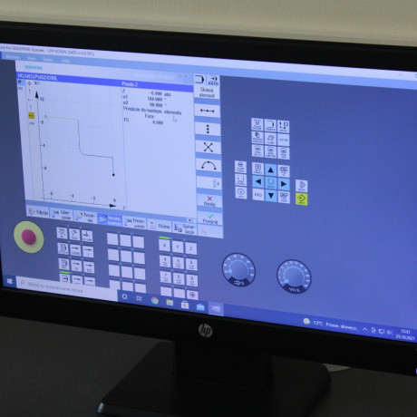 W szkoleniu, które realizowane jest tu w ramach grantu ministerialnego, bierze udział szesnaścioro naszych studentek i studentów. Zajęcia mają w dwóch grupach. Prowadzą je Jerzy Mijalski i Adam Mazgajczyk, nauczyciele CKZ z wieloletnim doświadczeniem. Podczas warsztatów przyszli inżynierowie uczą się prowadzenia całego procesu sterowania maszynami numerycznymi, najczęściej używanymi w przemyśle, a więc tokarkami i frezarkami. W centrum mają do dyspozycji siemensowską 5-osiową tokarkę z możliwością frezowania TOCK HTC-5000. Taka obrabiarka szybko i precyzyjnie wykonuje złożone kształty przede wszystkim z metali, w tym przypadku to aluminium, oraz tworzyw sztucznych.