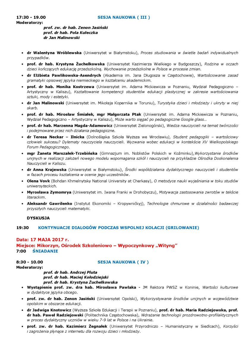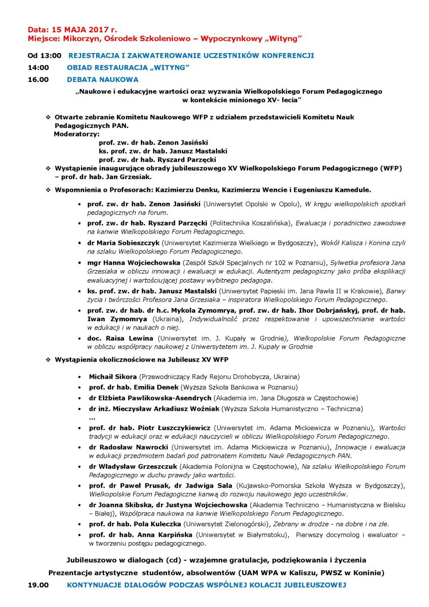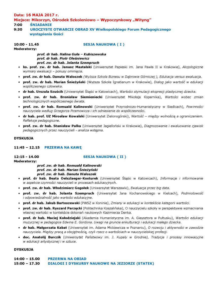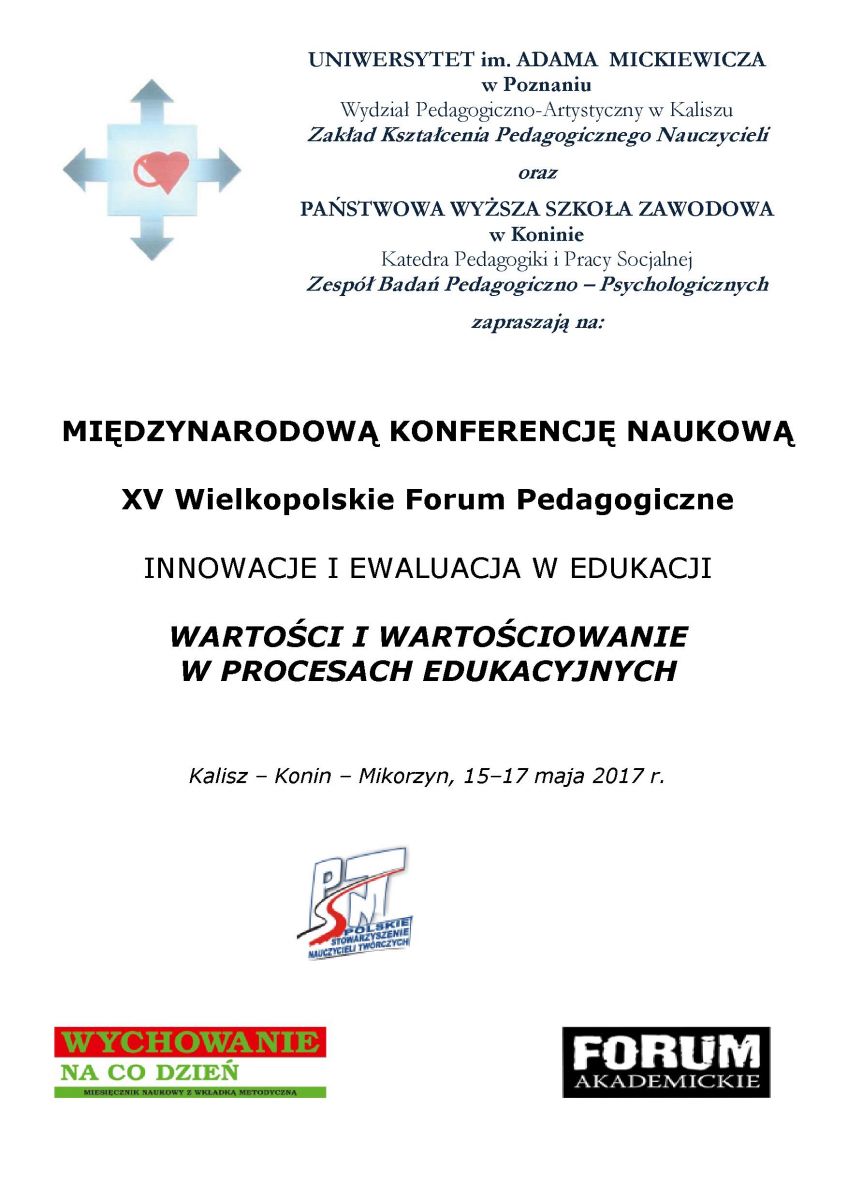 XV Wielkopolskie Forum Pedagogiczne „WARTOŚCI I ICH EWALUACJA W EDUKACJI”,