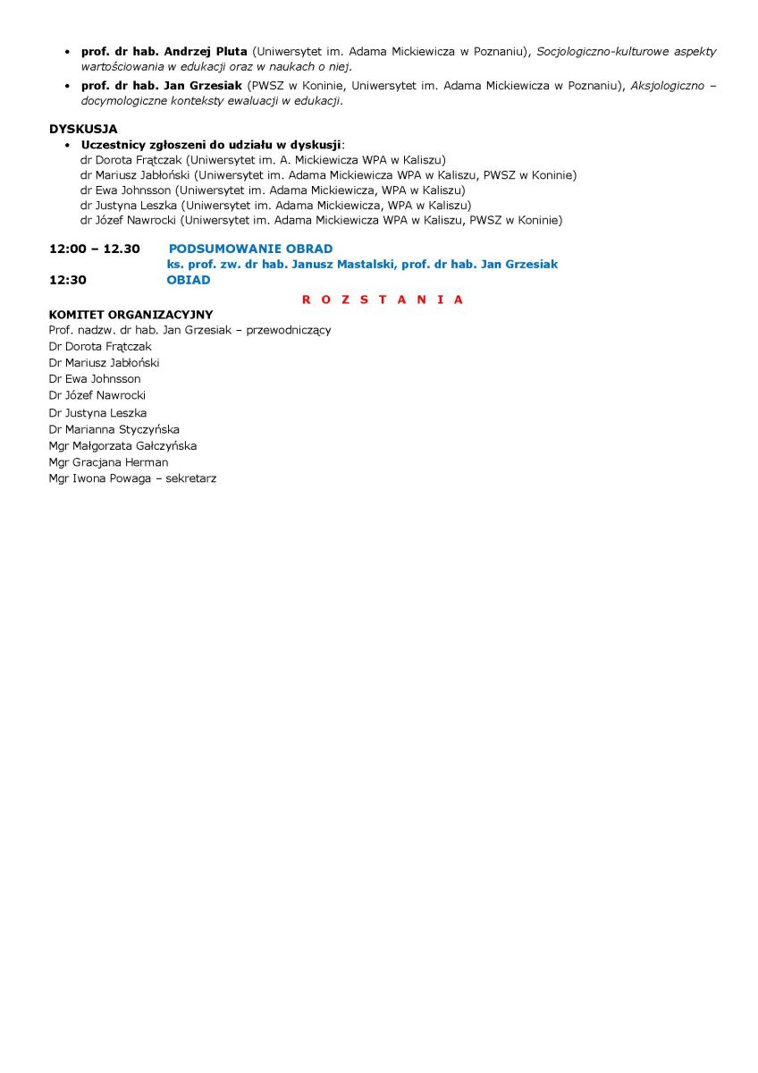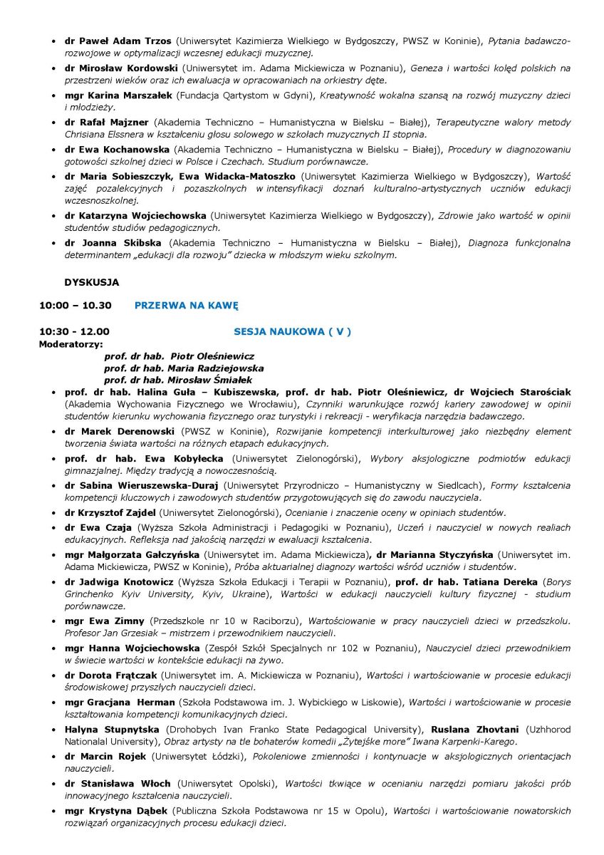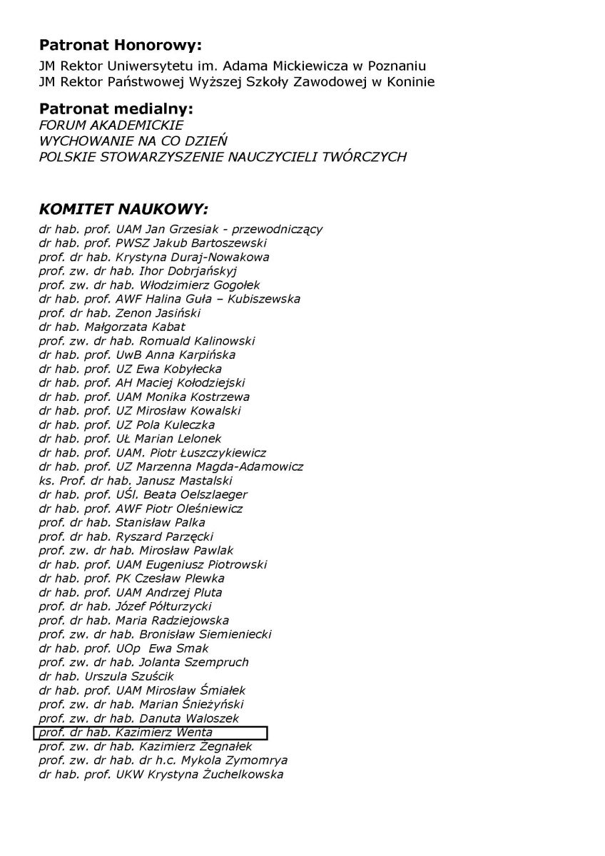 oraz Katedra Pedagogiki i Pracy Socjalnej – Zakład Pedagogiki, Państwowej Wyższej Szkoły Zawodowej w Koninie