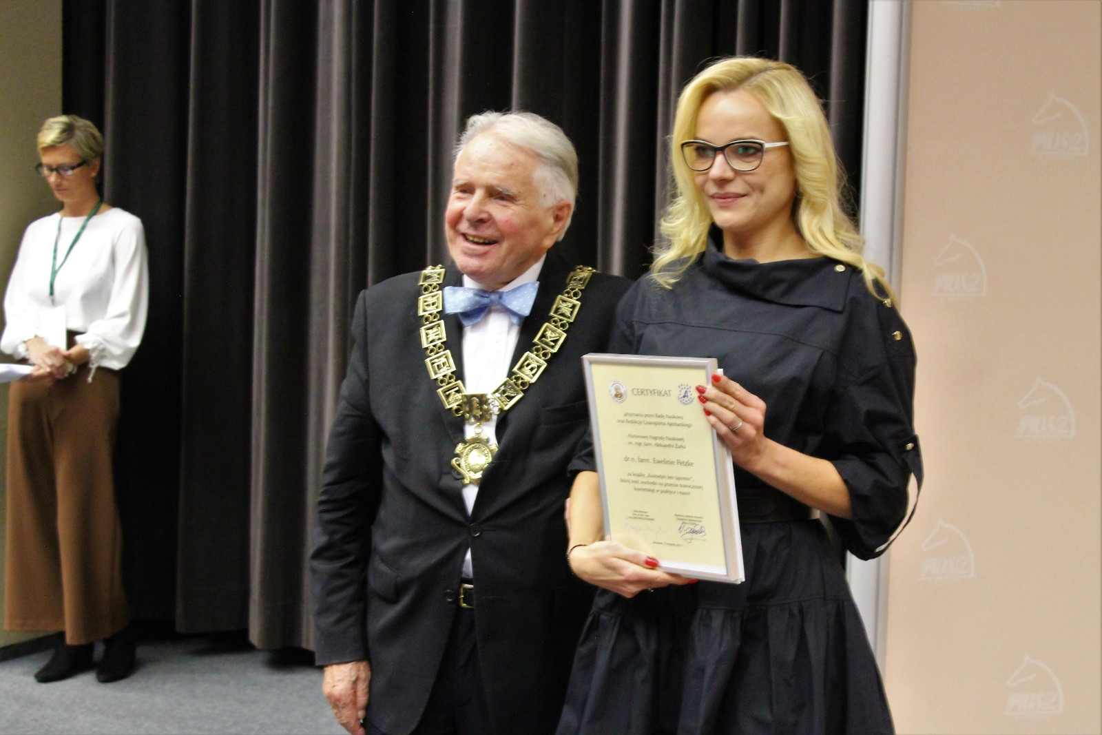 Ważnym punktem spotkania było wręczenie dr Ewelinie Petzke, adiunkt na Wydziale Nauk o Zdrowiu PWSZ w Koninie, Honorowej Nagrody Naukowej im. Aleksandra Żurka za książkę „Kosmetyka bez tajemnic”. Wiktor Szukiel, redaktor naczelny Wydawnictwa Farmapress, które książkę opublikowało, podkreślił jej wyjątkowe walory naukowe i zwrócił uwagę na okładkę, na której znalazły się ryciny z leksykonu lekarskiego roślin leczniczych z 1912 roku. Sama autorka podkreśliła, że napisała tę książkę na potrzeby nowoczesnej kosmetologii. – W książce są opisy roślinnych substancji naturalnych, jak i to, w jakich kosmetykach możemy wykorzystać określone ekstrakty – wyjaśniła dr Petzke.